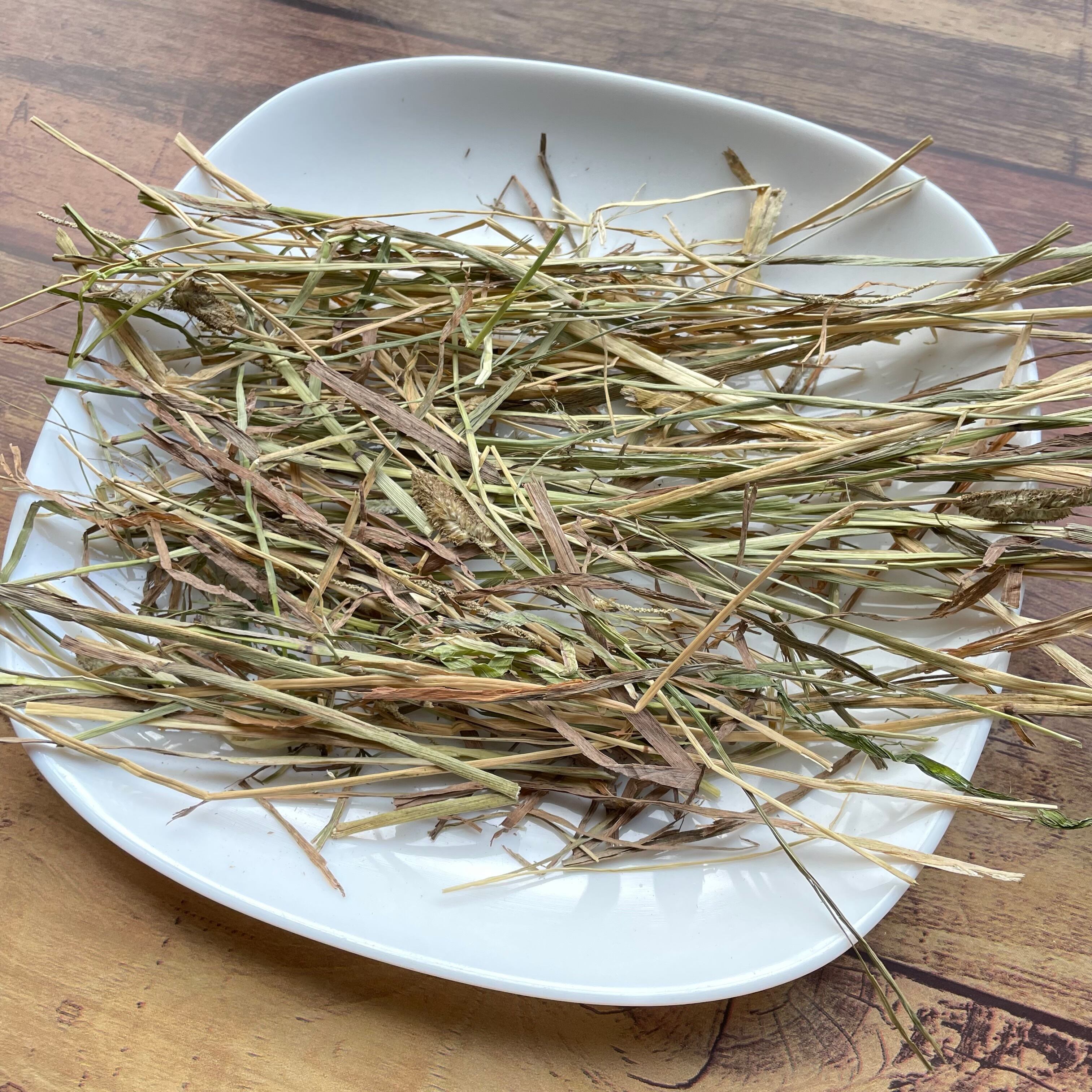 茶葉が目立ち色は良くないですが、一番刈りと二番刈りのいいとこどりで、二番刈りのような柔らかいチモシーです。