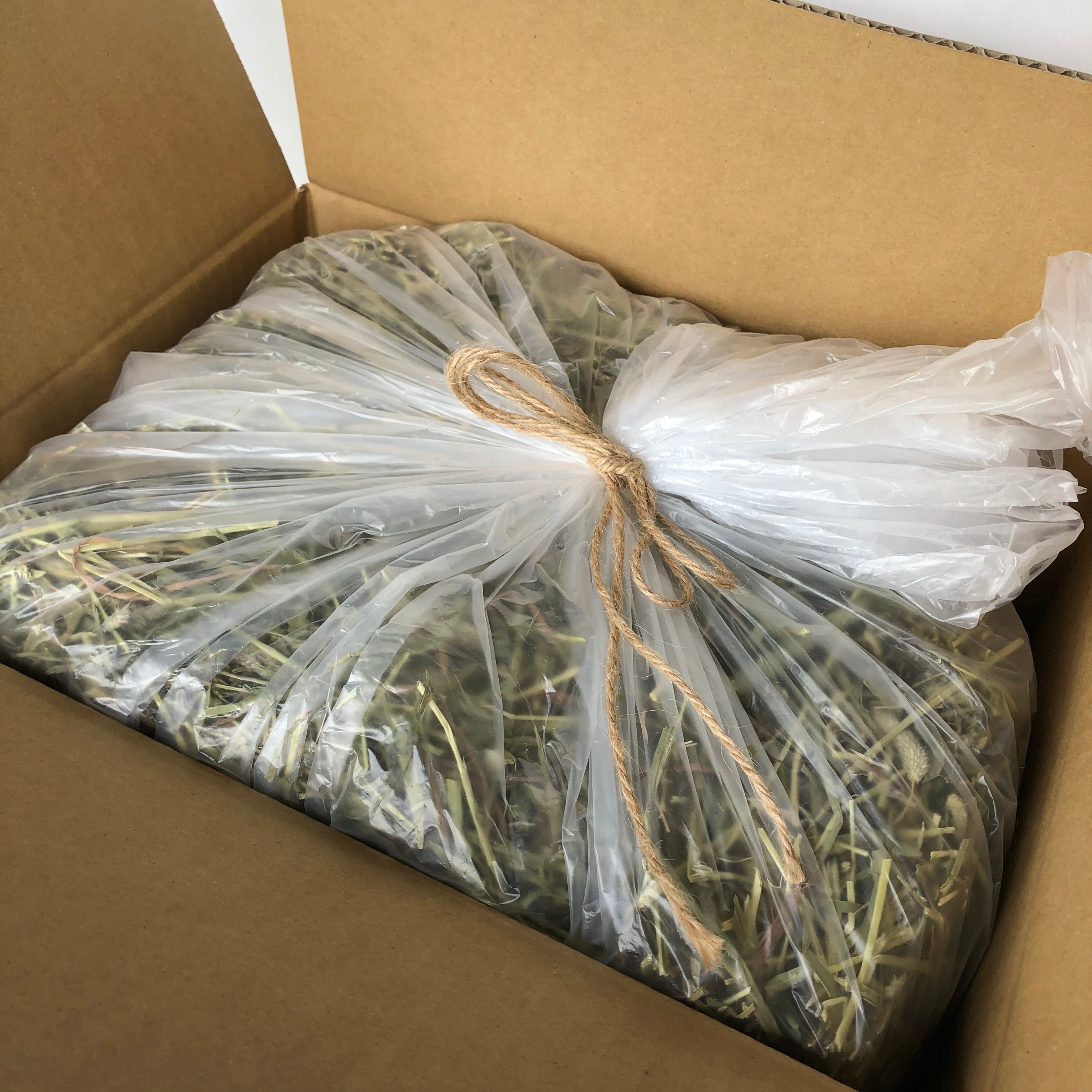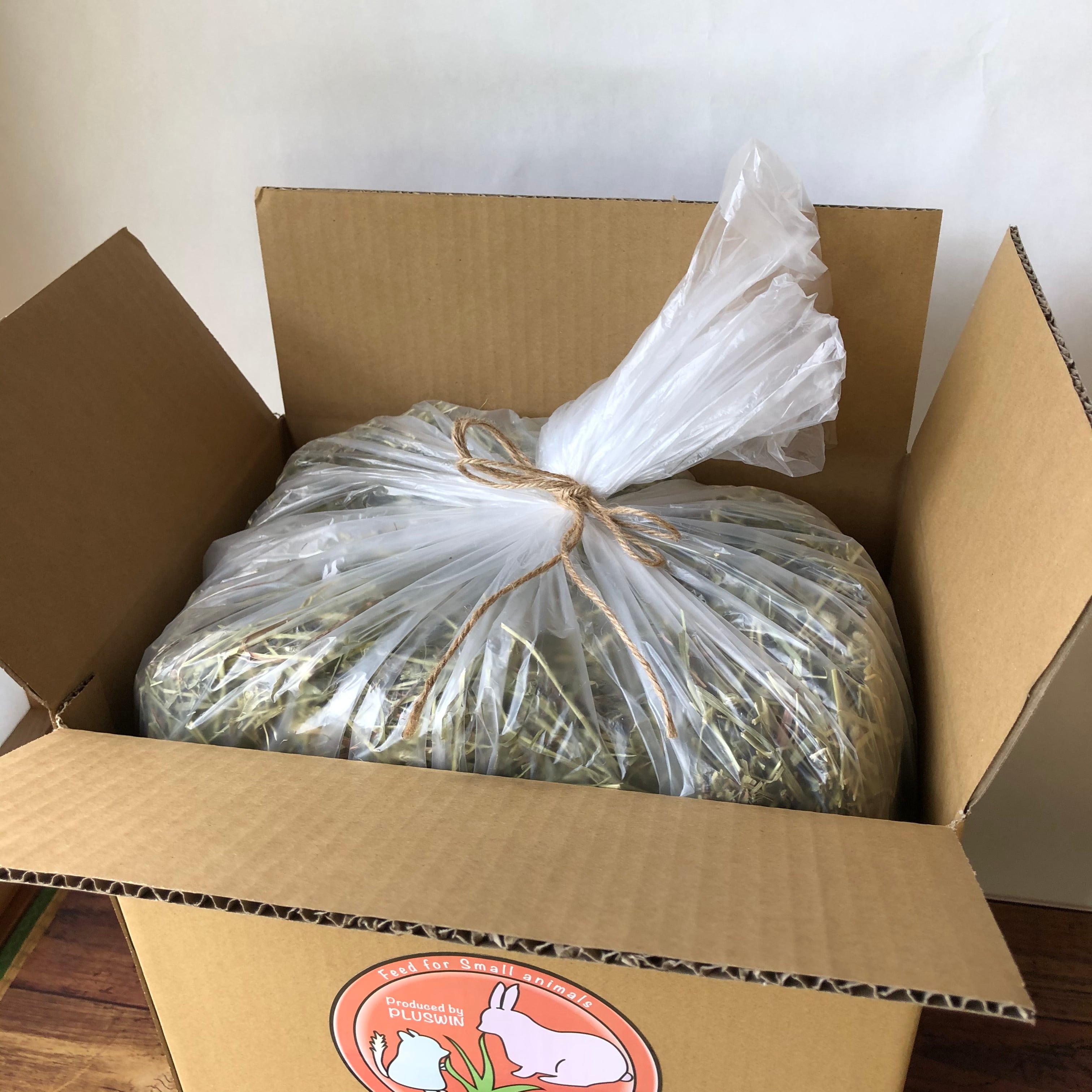 段ボールに5㎏チモシーをほぐさず無選別で詰めています。